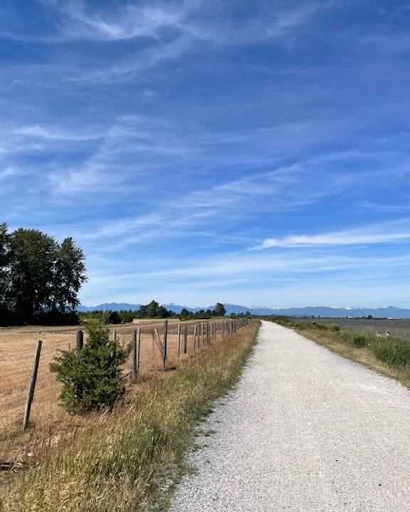 The Millennium Trail connects Deas Island to Ladner, offering over 15KM of meandering, mild-to-no elevation gravel, and paved paths through farmscapes, marinas, river bends, and suburban pop-outs at Captain’s Cove Marina and central Ladner. Keep in mind you can make this trip as long or short as you want, turning around at any point.